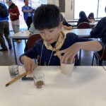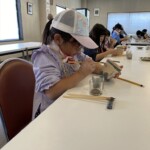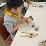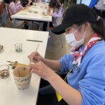 続いて窯元に移動。益子焼絵付け体験スタート。真剣な表情のみんな